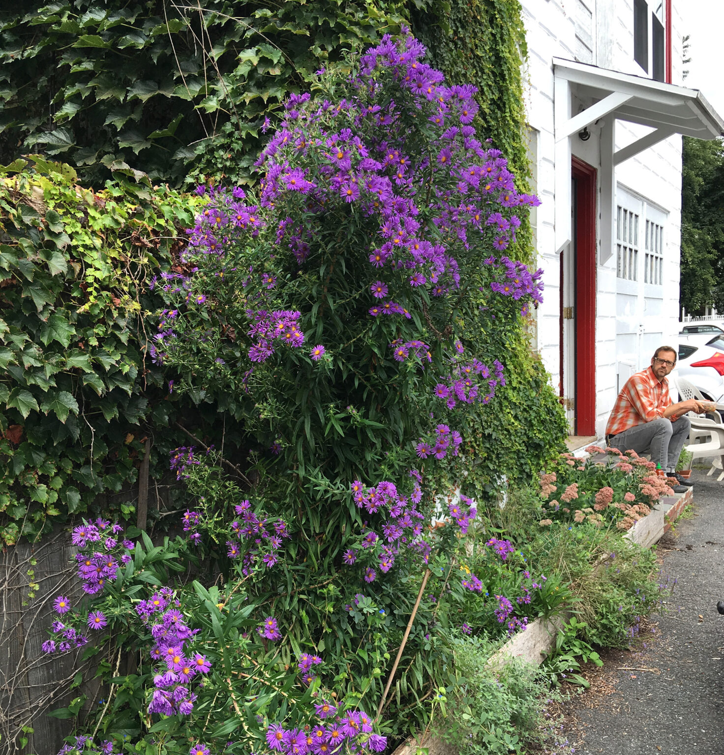 The New England Asters outside of our office grow almost six feet tall. For much of the season they look like a clump of weeds—tall, leggy stalks with long, fuzzy green leaves—until they pop like fireworks into an impressive display of bright purple flowers. As the early- and mid-summer flowers are fading, the asters become a focal point for the last lingering lunches outside on the front stoop. It isn’t just the color that draws our attention, it is the constant movement around the flowers. On close inspection, hundreds of insects swarm the flowers. And at any given moment, it is almost certain that a Monarch or Swallowtail butterfly is resting somewhere in the dense crown of blooms.